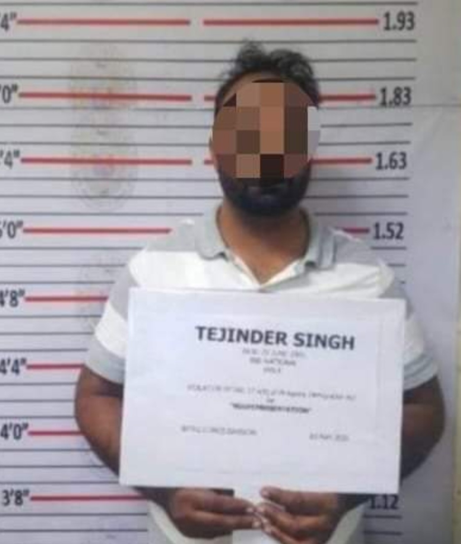 “Singh failed to show his passport and instead provided his driver’s license,” stated the report of BI-8’s RIOU, following the arrest.