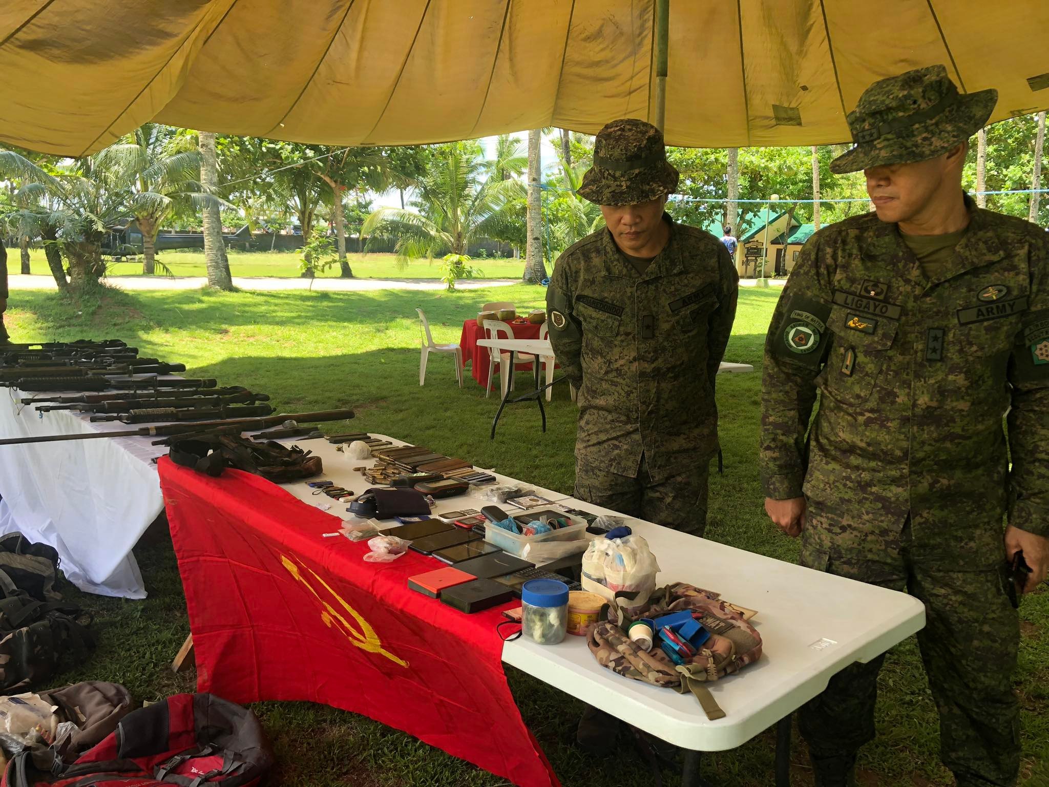 Tacloban City-Soldiers of the 74th Infantry Battalion (74IB) confiscated 11 assorted firearms left behind by about 10 terrorists who fled after engaging the government troops in a gunbattle at the mountainous barangay of Magsaysay in Mapanas, Northern Samar early morning of Wednesday (May 10).