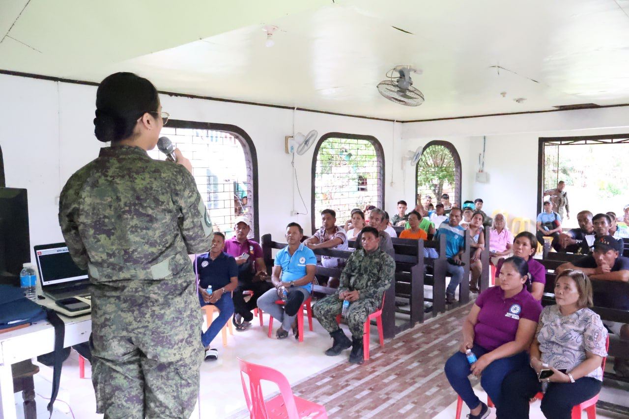 Meanwhile, the Civil-Military Operations Officer of 20IB, 1st Lt. Joyce Ann L. Bayron, stressed the collective responsibility of the Barangay Local Government Unit and the community in maintaining peace and order. “Peace and order is a shared responsibility. Sa loob ng 54 na taon, ang insurhensiya ay naging problema ng ating lipunan. Hindi na natin dapat pahintulutan ang mga pagkilos ng mga Komunistang Teroristang Grupo na muling magpatuloy at manggulo sa ating barangay. Magtulungan tayo upang tapusin ang mga mapanlinlang na gawain ng ating mga kapatid na patuloy pa ring naliligaw ng landas. Sa pagkakaisa, makakamit natin ang pangmatagalang kapayapaan at tunay na kaunlaran para sa mga susunod na henerasyon,” Bayron added.